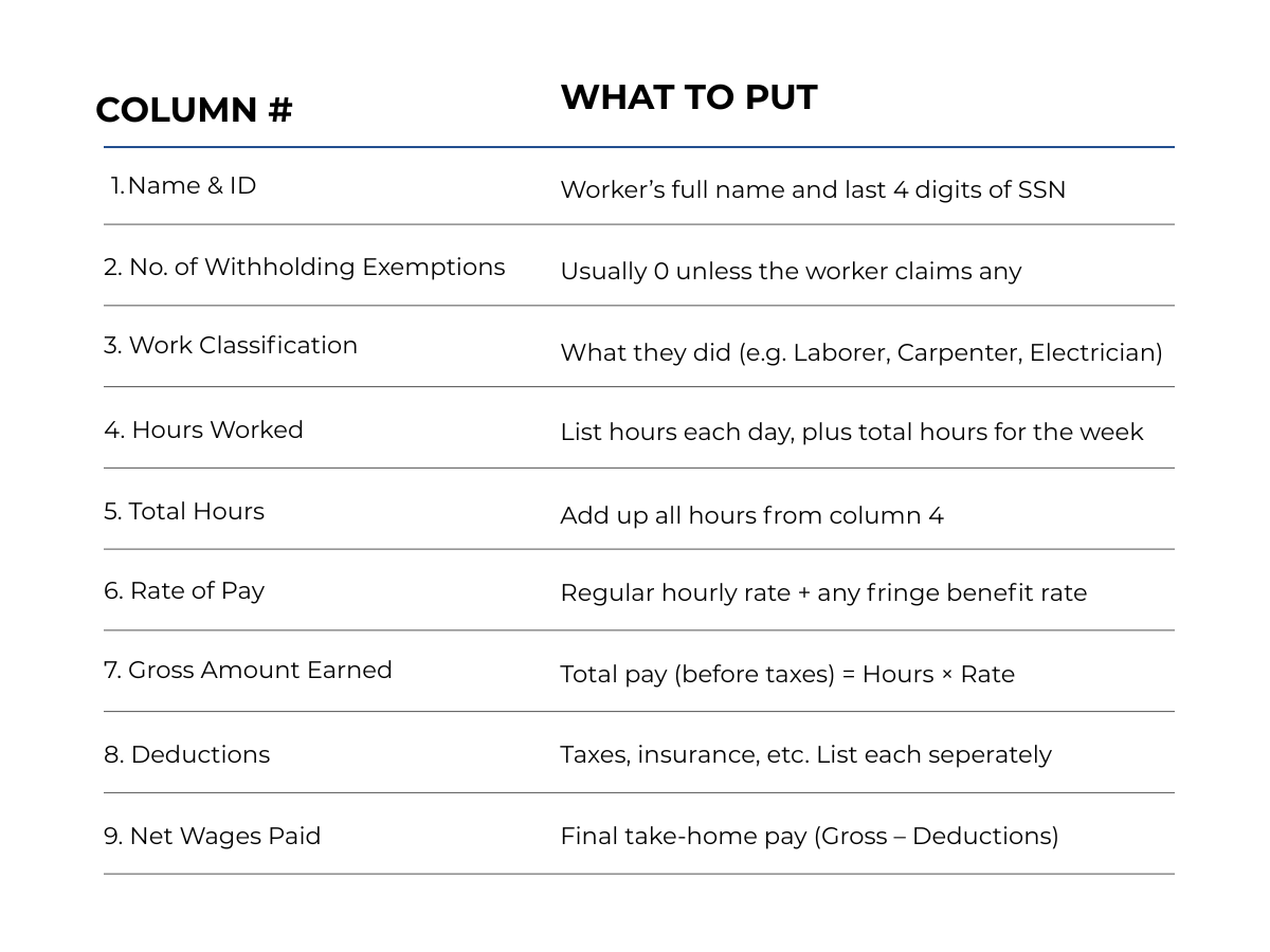 It’s a certified payroll report that you fill out every week when you have workers on a federal or public works job.